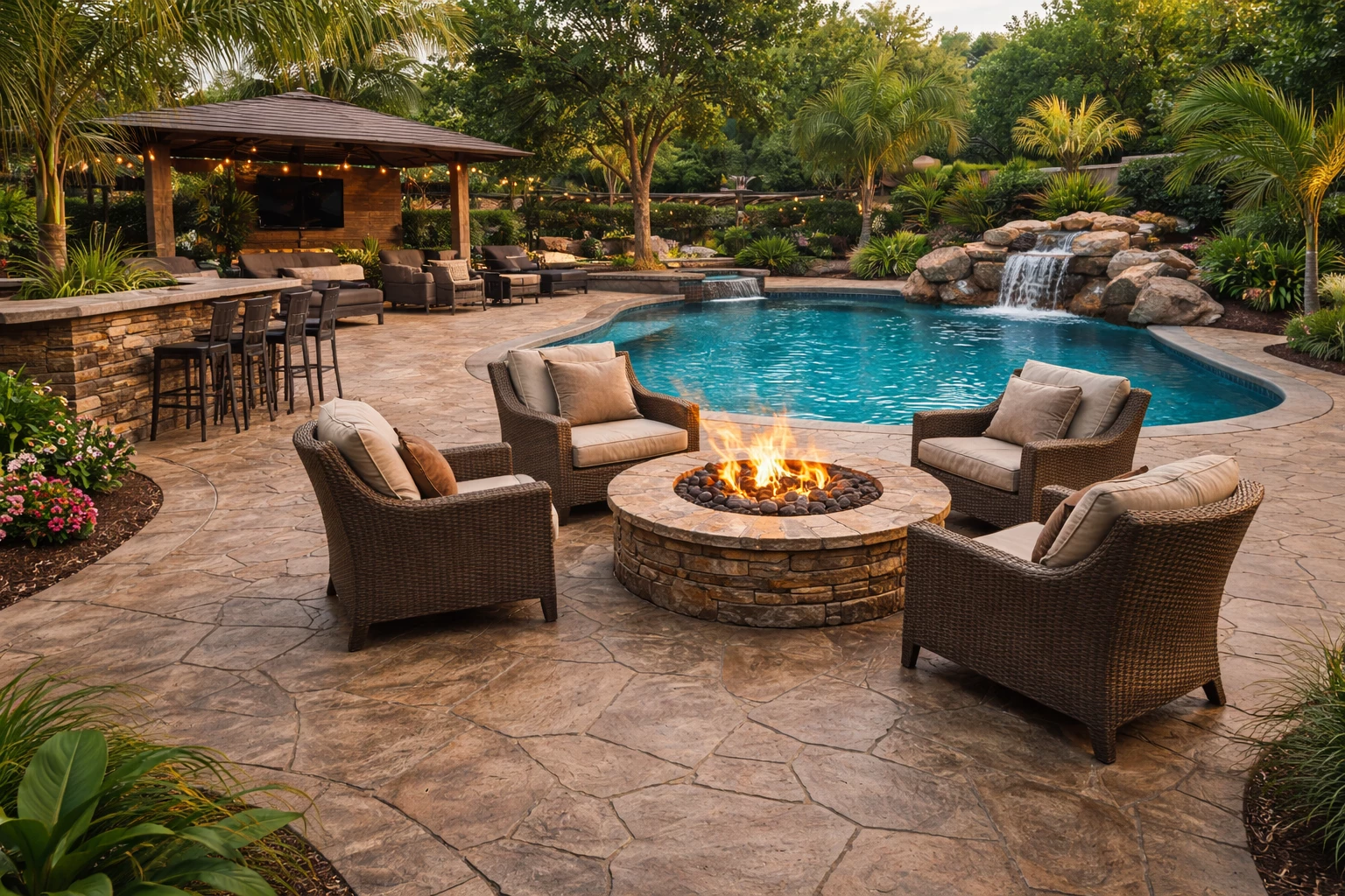 Custom stamped concrete patios and pool decks